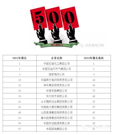 【榜單】2015中國(guó)企業(yè)500強(qiáng):電力企業(yè)幾家上榜?